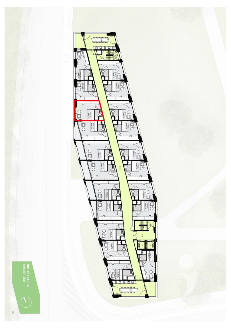 Modern room located in student residence Woods, near the Belle-Vue park. The residence is a stone's throw from the center of Leuven, within walking distance of the train station and near several campuses.