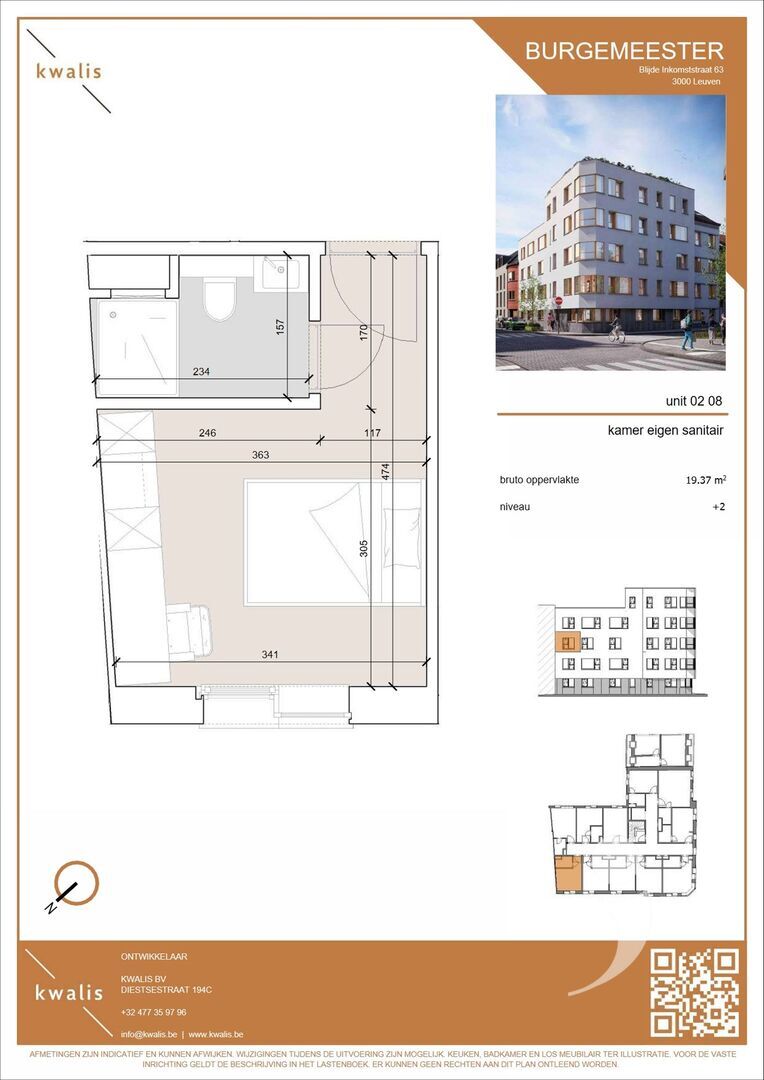 The unit is part of Student Residence Burgemeester: a high-quality student project with 41 quality student rooms and studios in Blijde Inkomststraat in Leuven, within walking distance of faculties, train station and the city center.