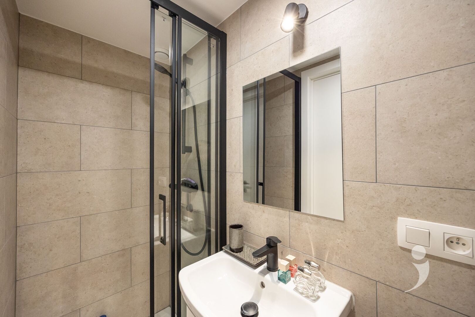 Discover this high-quality and stylish student room in a completely renovated building located at 154 Mechelsestraat, in the heart of Leuven. The building was renovated according to the rules of the art and finished with high-quality materials. In total there are 7 modern student rooms, each with its own sanitary facilities. On the ground floor is a cozy common room with an adjacent spacious kitchen overlooking a green city garden with terrace the ideal place to relax or study together.