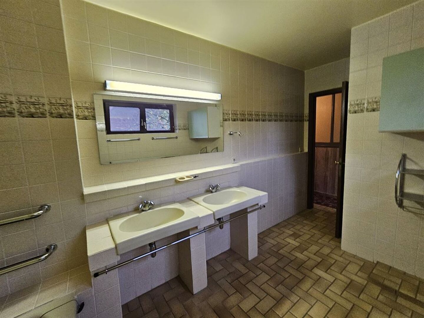 The spacious bathroom has a double sink and a bath with shower function. In the hallway there is a 2nd toilet.
