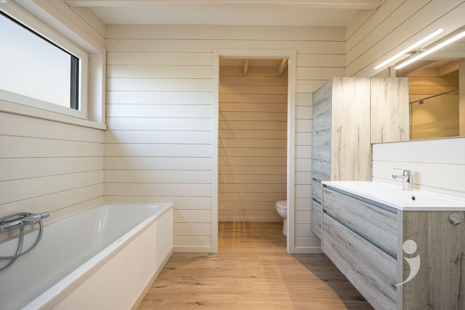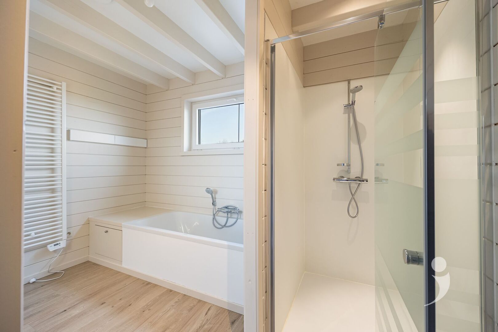 Through the entrance hall with separate guest toilet you enter the house. The spacious and bright living space together with the open kitchen form the heart of the house. Thanks to the large windows, you enjoy a pleasant natural light.