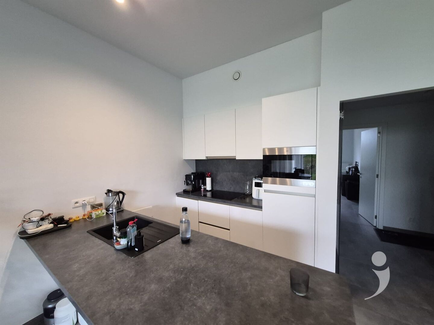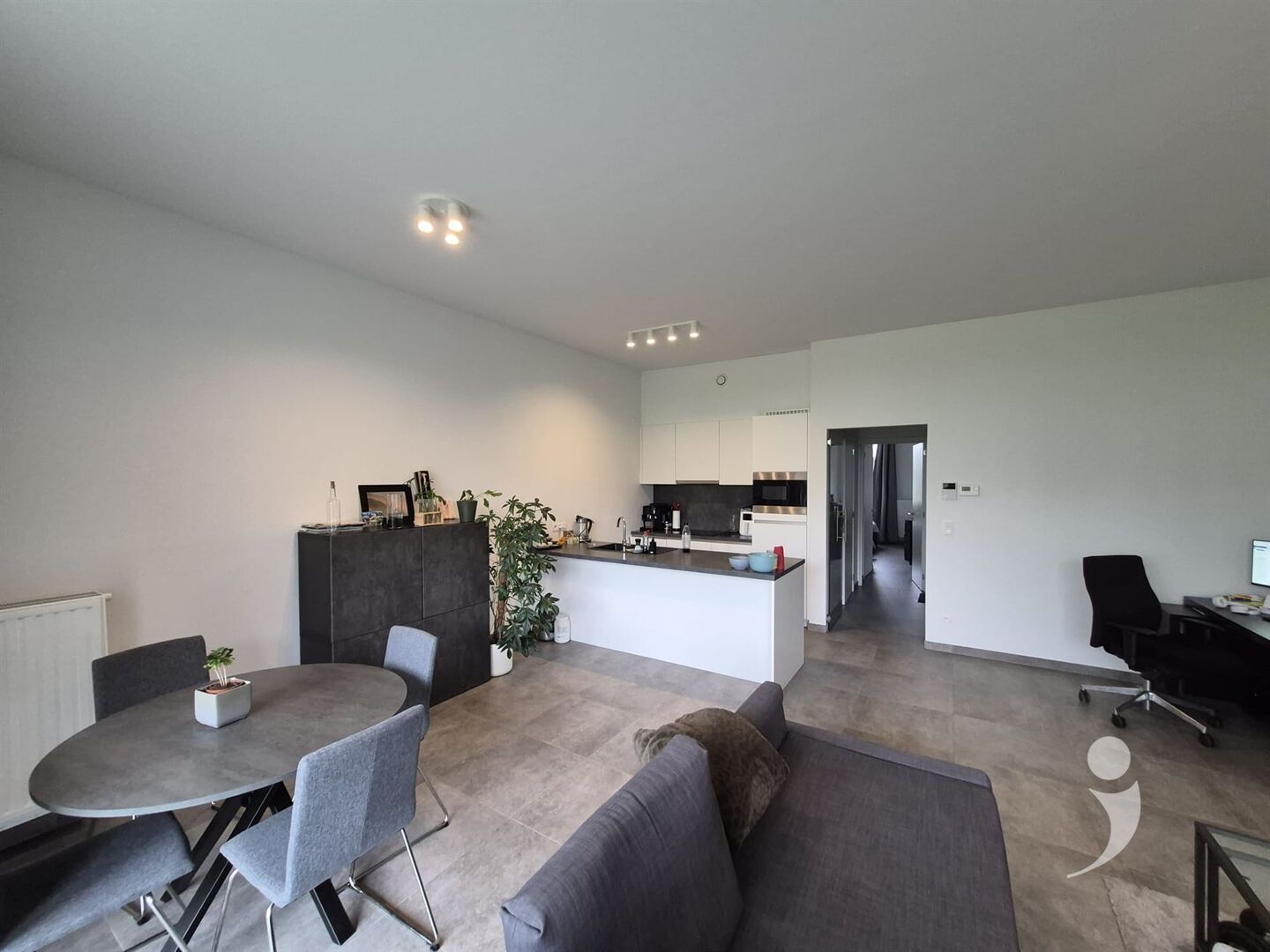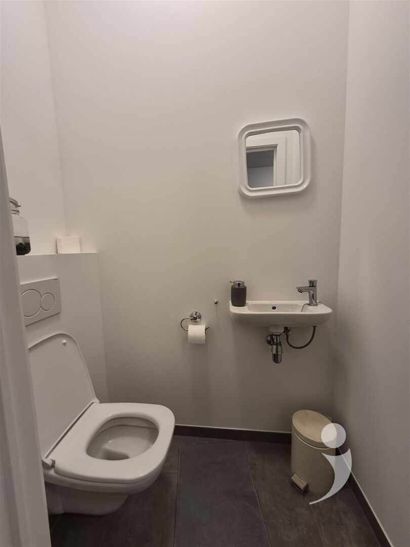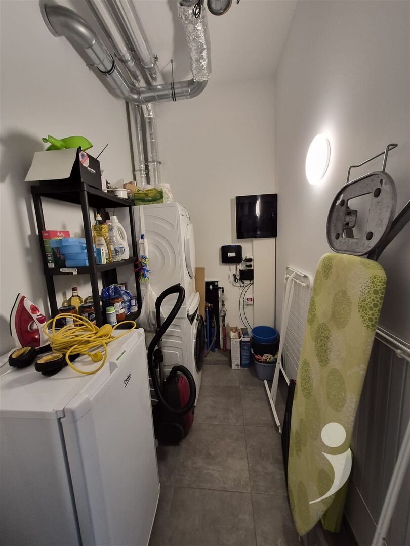 Het appartement is voorzien van een mooie lichtrijke leefruimte, een zonnig avond terras, een afgewerkte keuken met alle nodige ingebouwde toestellen ( Inductie kookplaat, frigo met diepvries vak, combi oven, afwasmachine, afwastafel ) alsook een mooi ingerichte badkamer met een douche, enkele wastafel met meubel en een handdoek verwarming.