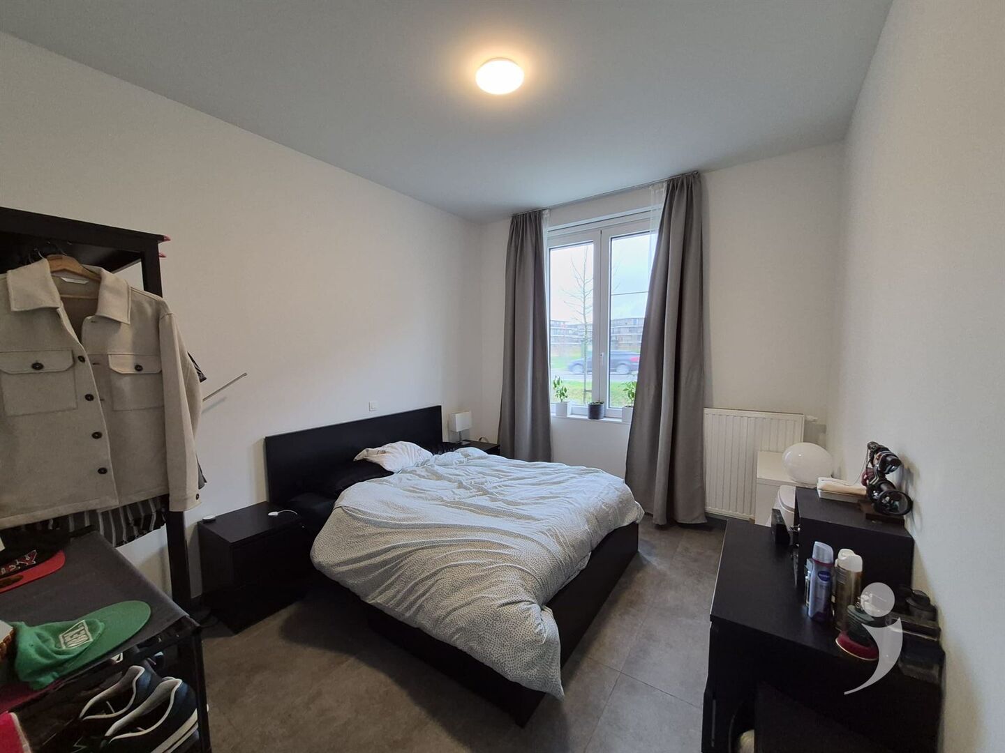 Gordijnen en lichtarmaturen aanwezig.