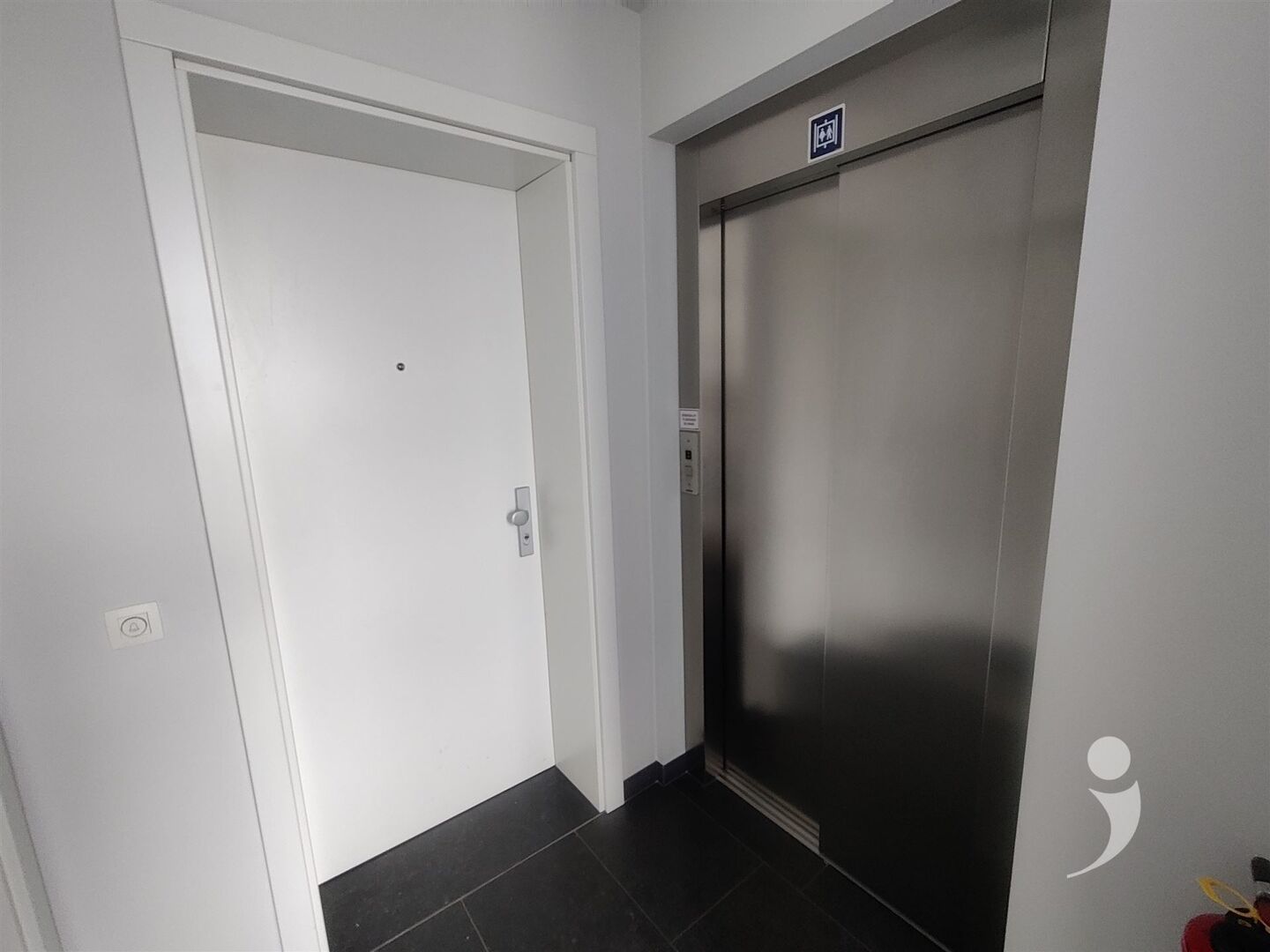Vlak naast de lift is de inkom van het appartement met een stevige veiligheidsdeur dat voorzien is van een meerpuntenslot.