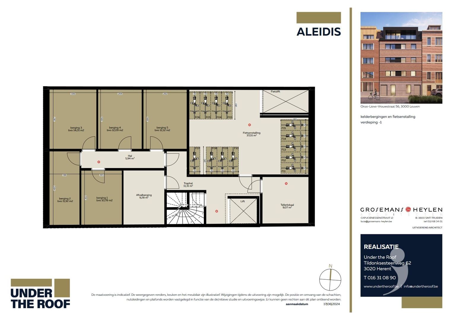 Het gebouw beschikt over bergplaatsen een ondergrondse fietsenstalling (bij aan te kopen) die bereikbaar is via een fietslift.