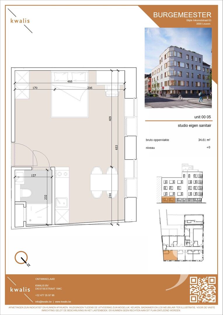 De unit maakt deel uit van Studentenresidentie Burgemeester: een hoogwaardig studentenproject met 41 kwalitatieve studentenkamers en studio’s in de Blijde Inkomststraat in Leuven, op wandelafstand van faculteiten, station en het stadscentrum.