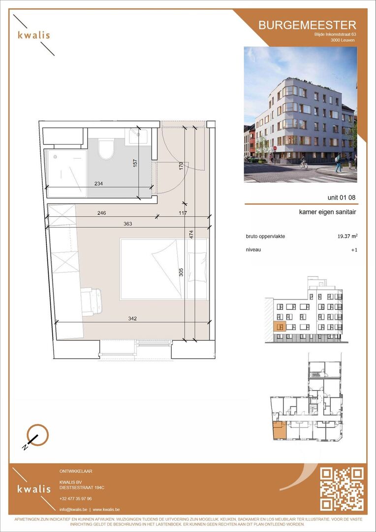 De unit maakt deel uit van Studentenresidentie Burgemeester: een hoogwaardig studentenproject met 41 kwalitatieve studentenkamers en studio’s in de Blijde Inkomststraat in Leuven, op wandelafstand van faculteiten, station en het stadscentrum.
