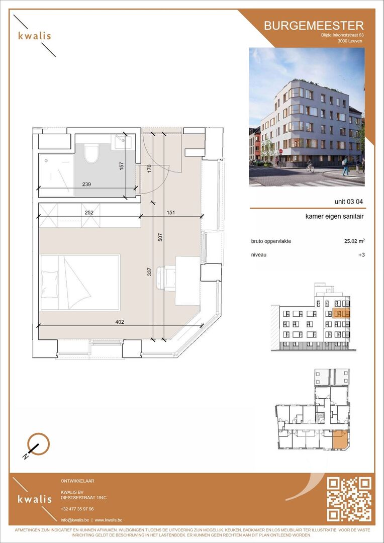 De unit maakt deel uit van Studentenresidentie Burgemeester: een hoogwaardig studentenproject met 41 kwalitatieve studentenkamers en studio’s in de Blijde Inkomststraat in Leuven, op wandelafstand van faculteiten, station en het stadscentrum.